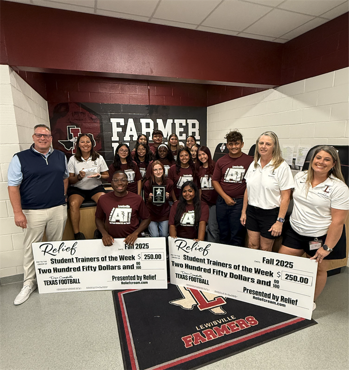 Lewisville High School's Training Staff & the Student Trainers of the Week - Cameron Williams & Gi'Anna Hilman